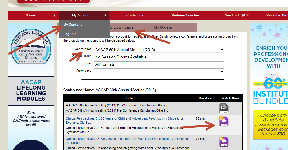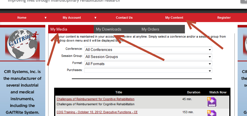 The "My Content" area is where you can view and download all of your purchased content from current as well as past conferences.