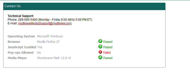 You can also check if you system is compatible with the Learning Center by clicking the Contact Us tab and the site it will automatically check if your system is compatible.