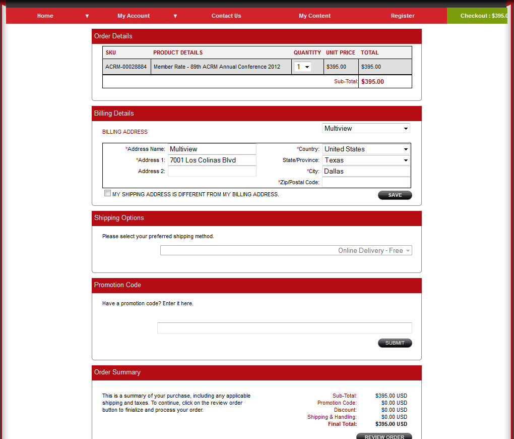 Below the "promotion code" section is where you will find a brief summary of your order in the "order summary" section including applicable shipping and taxes. Click on "Review Order" to obtain an in depth overview or summary of your order. Here you can verify that all your account information, billing address and content purchased is correct. If you want to edit your order click on "edit my order" and if you are satisfied with the order enter your credit card information in the "payment details" section and click on "process order" to finalize your transaction. You will receive a confirmation that your order has been processed, as well as an e-mail confirmation for your records.